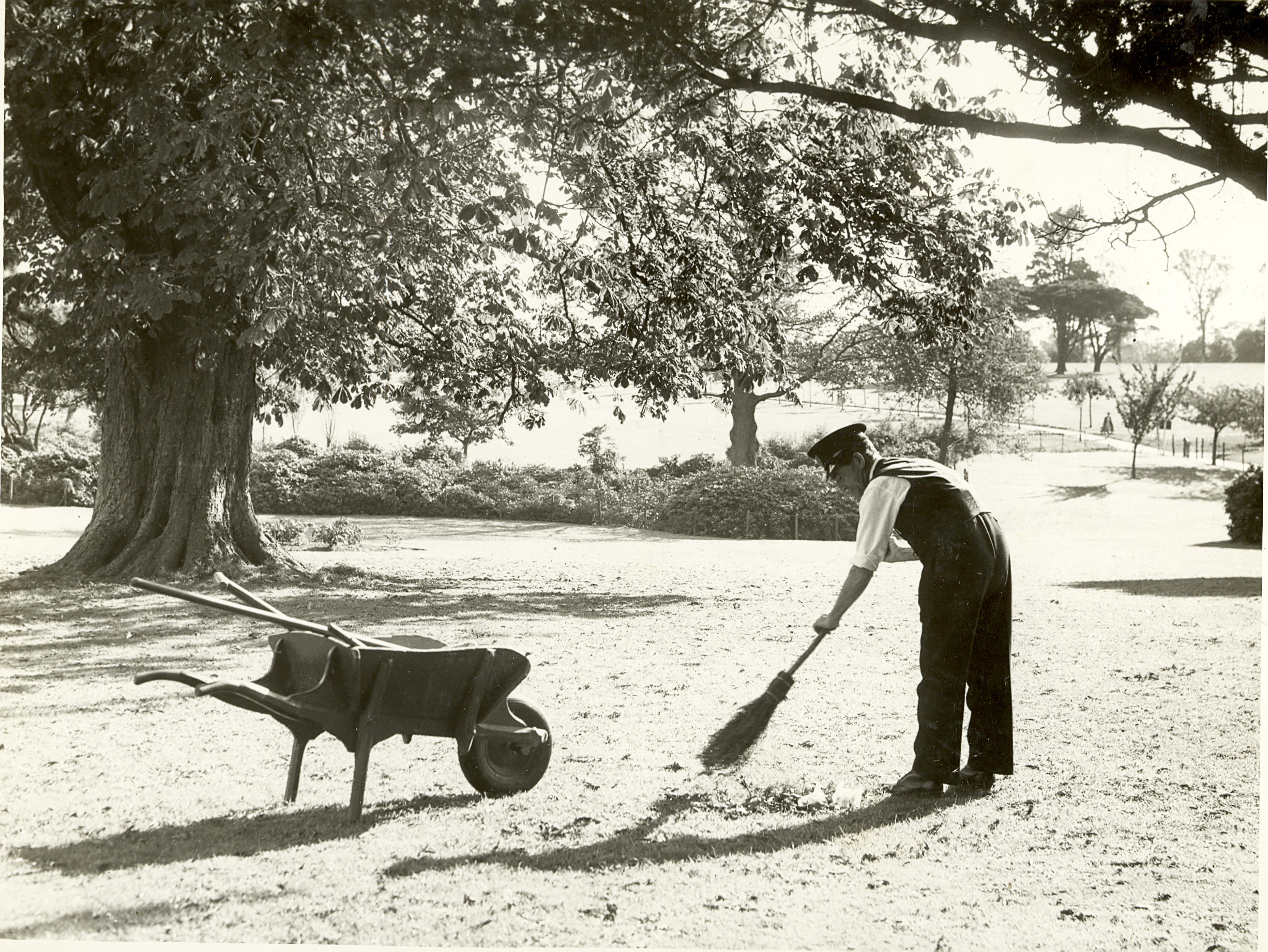 People’s enjoyment of the park depends on those working in it to keep it tidy and well-maintained, although much has changed since this picture of a groundsman sweeping leaves was taken in October 1957.