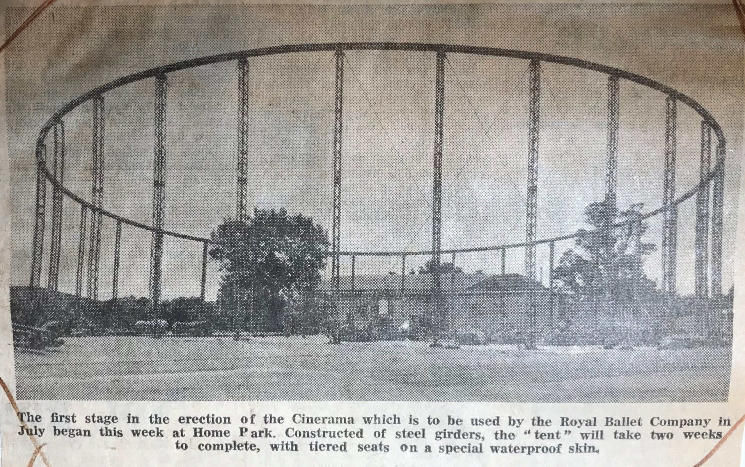 Before Plymouth’s new civic theatre, the Theatre Royal, opened in 1982, theatrical productions were staged in a very large tent, otherwise known as a Cinerama or Theatrama. It was erected for the summer season in most years from 1964 onwards on the hard standing at Higher Home Park between the Mayflower stand and Gilbert Lane.