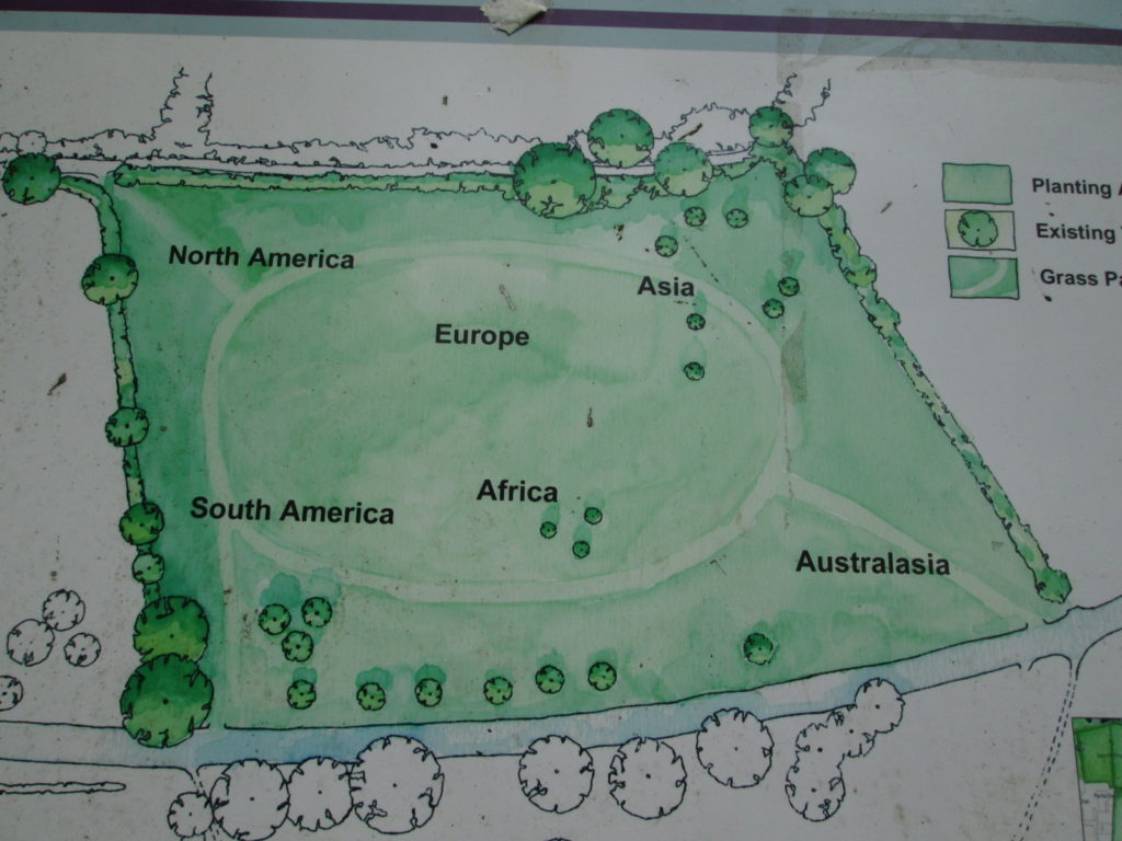 ‘Trees of the World’ was agreed as the planting theme and areas were allocated for trees from each continent to echo the theme of discovery used for the Seven Continents Adventure Playground which opened in 2003.