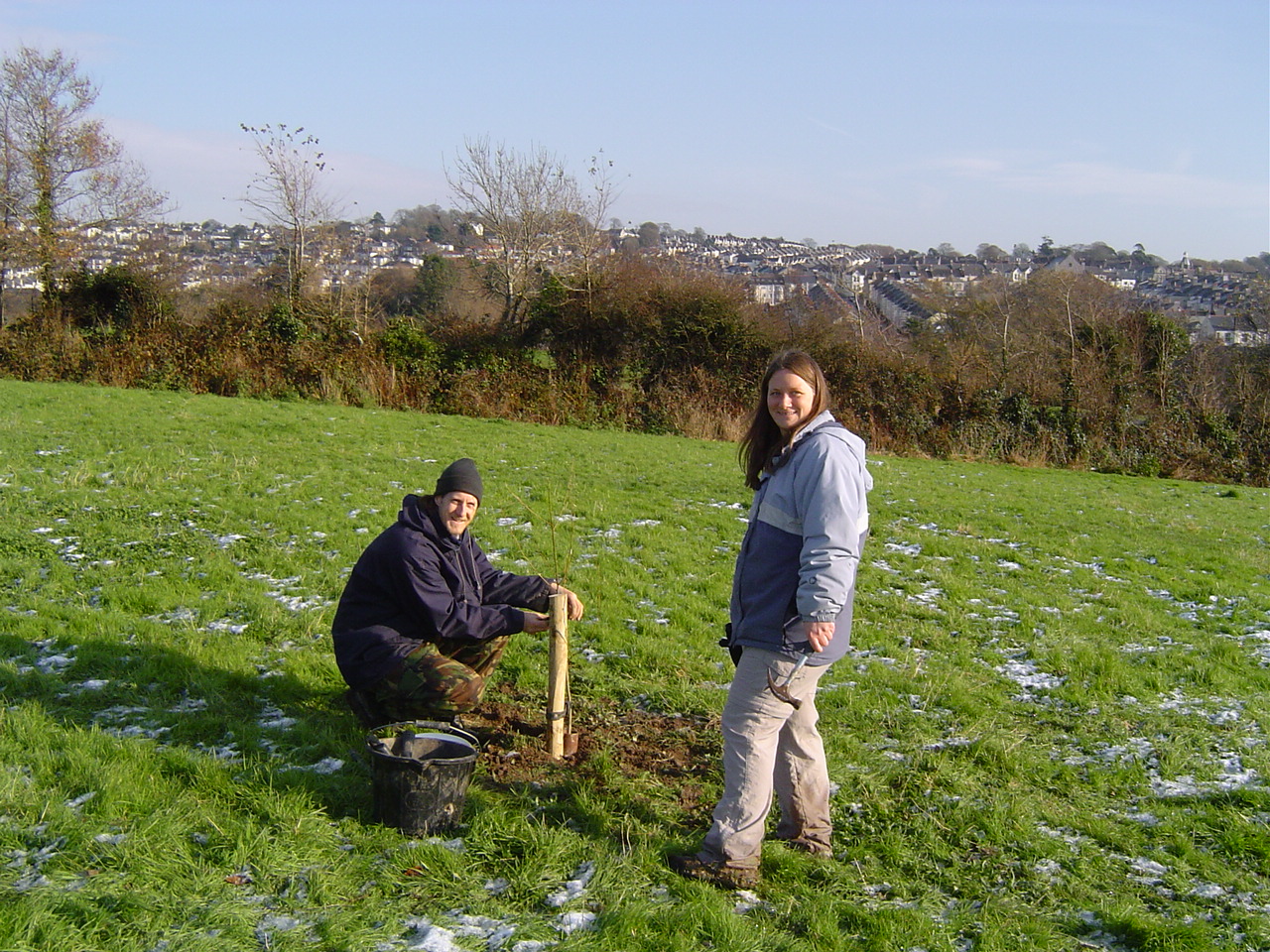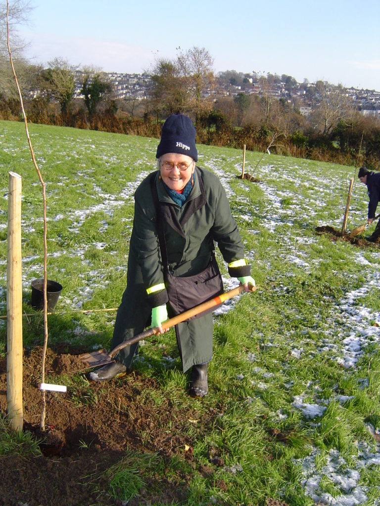 In 2003 the conservation charity, International Tree Foundation, was looking to extend its Family Tree Scheme to more places. At the same time, Plymouth City Council wanted a better use for ‘Lane End’ – the field next to Cottage Field between Gilbert Lane and Jubilee Row – and decided to make it available. Football and cricket had been played there but paths on its boundaries were too close for safety.