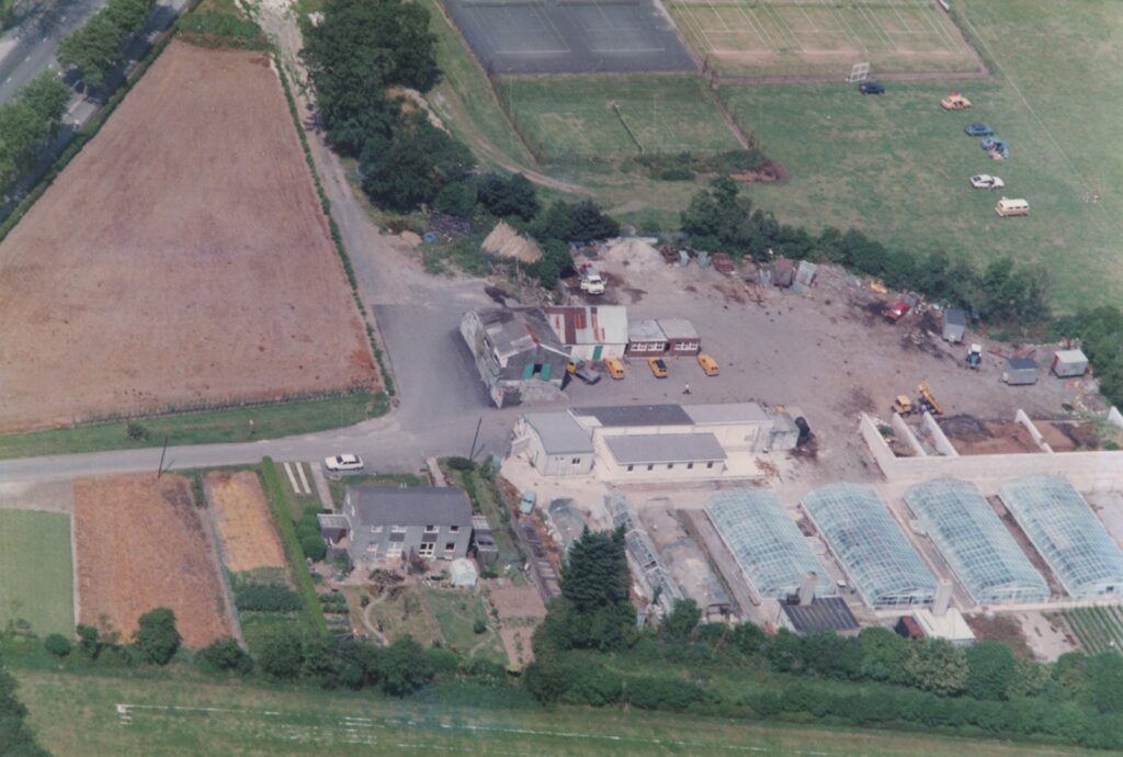 In this photograph of the depot and nursery taken c1975, Outland Road is just visible in the top left-hand corner. The timber-framed house is to the left of the greenhouses whilst the area at the bottom left was used for sowing polyanthus and wallflower seeds. When large enough, the plants would be pricked out to the larger ground at the top left of the photograph.